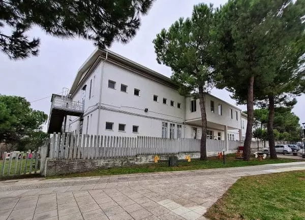 L’edificio è circondato da uno spazio recintato, costituito da uno spazio esterno che viene utilizzato dalle classi nei momenti di pausa e di gioco.